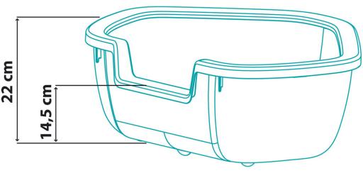 Si no tienes mucho espacio en tu casa para la caja de arena, Dama es la solución a tu problema! Esta caja está diseñada para ser colocada en las esquinas de la habitación. Tiene un marco de plástico que ayuda a mantener la bolsa higiénica en su sitio. Dama también tiene una base más profunda, para asegurar la máxima higiene y prevenir que salga suciedad de la caja.