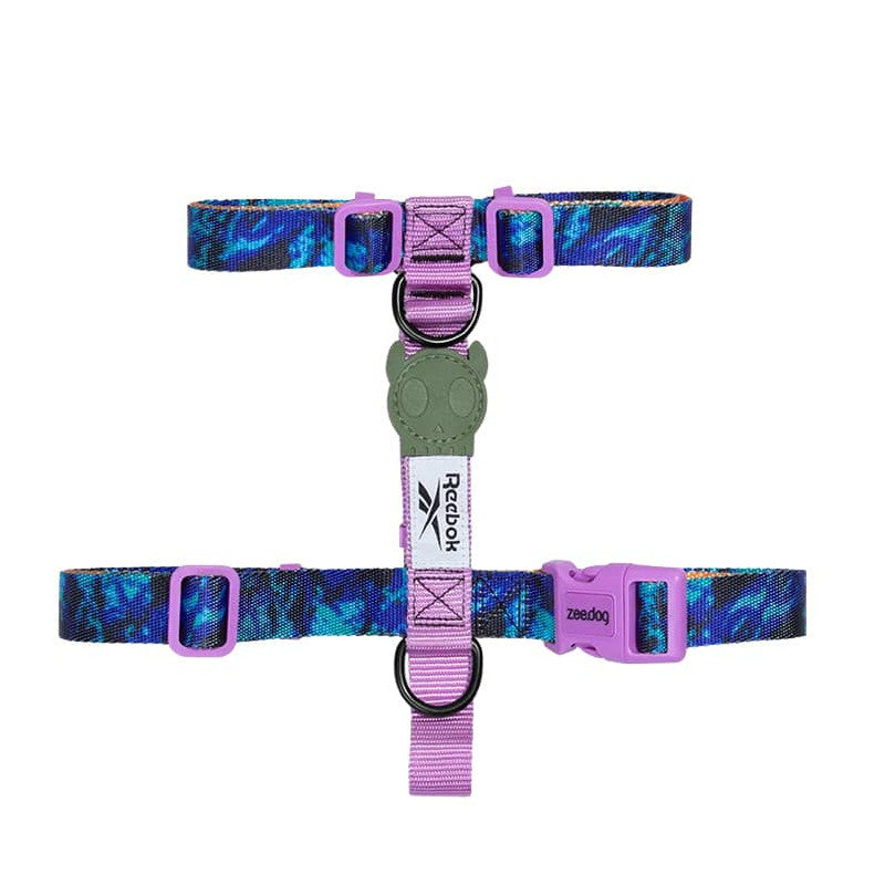 El arnés H-Harness Trekk es otro lanzamiento exclusivo fruto de la colaboración Reebok × Zee.Dog. Fabricado en poliéster resistente, el mismo material que se utiliza en los cinturones de seguridad. La paleta une verde bosque, tonalidades violáceas y acentos naranja, evocando el equipamiento de trekking y los materiales high-performance. Cuenta con dos puntos de sujeción para la correa. La hebilla cuenta con un sistema de bloqueo de 4 puntos para mayor seguridad. Se recomienda siempre el uso de jabón neutro. Deje secar al aire. La fantasía Trekk está pensada para quien ama un estilo técnico, robusto y contemporáneo, ideal para transformar cada paseo en una pequeña aventura.
